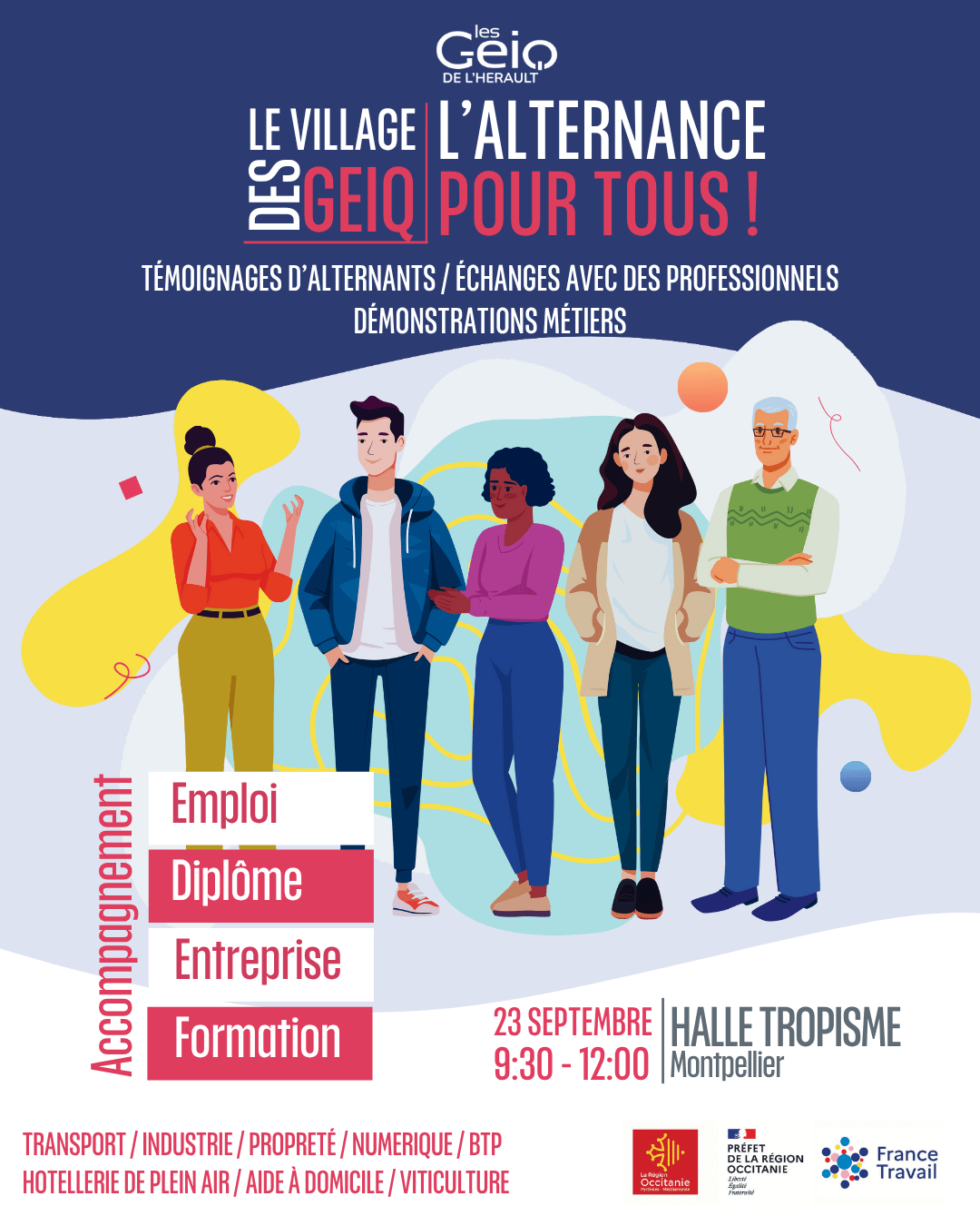 Le 23 septembre dernier, le Village des GEIQ : l’alternance pour TOUS ! a posé ses valises dans l’Hérault offrant un temps fort de valorisation des métiers et des parcours en alternance au sein du réseau GEIQ.